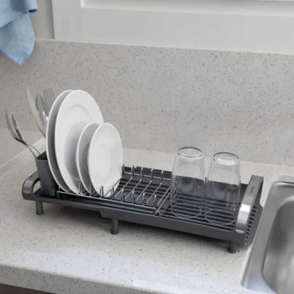Ideal para uso diário, acomoda pratos, copos, talheres e utensílios com praticidade, ocupando pouco espaço na pia.